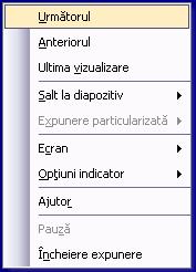 Deschide un meniu care permite navigarea īntre diapozitive, se pot face adnotari. |