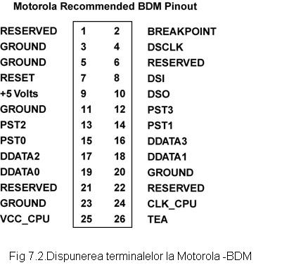 In figura 7.2 este prezentata dispunerea pinilor la o interfata de debug de tip BDM ( Background Debug Mode).