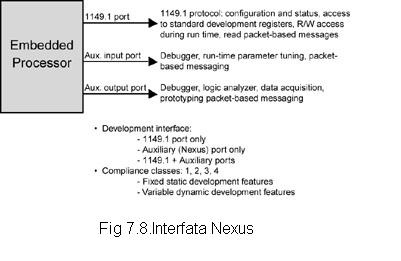 In figura de mai sus este facuta o descriere a pinilor in cazul interfetei JTAG -IEEE 1149.1. Desi observatiile anterioare au fost un pic de rau augur, pentru furnizorii de instrumente poate fi un lucru bun. Cu un astfel de spectru larg al microprocesoarelor incorporate, numarul de proiecte pentru un dispozitiv, sau o familie de dispozitive, poate fi mic. În fapt, el poate fi prea mic pentru a sustine un numar mare de furnizori care ar putea dori sa-l sprijine. Dilema cu care se confrunrta des furnizorii de semiconductoare este de a garanta înalta calitate, pe termen lung, suport pentru produse din trecut si viitor. Deseori, este mai bine sa pastreze un numar mic de parteneri sanatosi, mai degraba decât sa pastreze un numar mare de a muritori de foame.