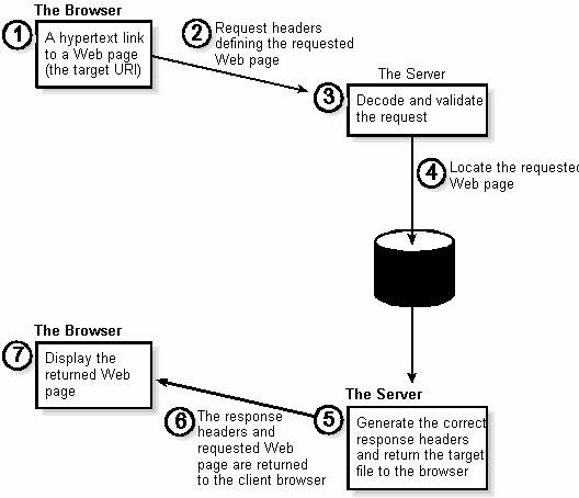 Browser-ul Web cere o anumita pagina web (URL - Uniform Resource Locator) de la server. Nu conteaza daca acel URL a fost introdus de utilizator, sau a fost asociat cu un hiperlink, un bookmark, sau cu un buton al browser-ului numit Home. Important este ca serverul de Web raspunde la cereri, de obicei trimise de un browser web sub controlul utilizatorului. Software-ul serverului Web este instalat pe un calculator gazda potrivit. Īn functie de volumul cererilor pe care trebuie sa le manipuleze serverul se alege sistemul de operare si platforma harware pentru server. Odata instalate si configurate, majoritatea serverelor web doar asteapta si asculta daca exista cereri de la browser-ele web.