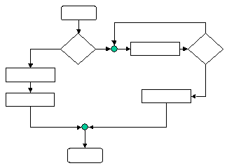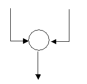 Acest simbol nu joaca nici un rol în prelucrarea efectiva a datelor. El permite regruparea a doua iesiri într-o singura intrare în modul urmator, precum si etichetarea acestui nod prin înscrierea în cerculet a unui cod de identificare. |