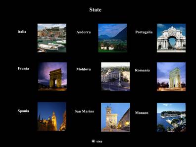 Prin apasarea butonului cu numele tarii,va aparea cadrul de la care incep imaginile corespunzatoare acesteia.