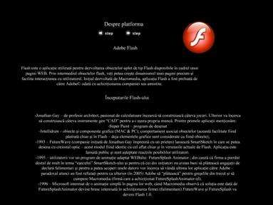 2."Ajutor" - in care sunt prezentate informatii despre platforma Adobe Flash si despre structura site-ului