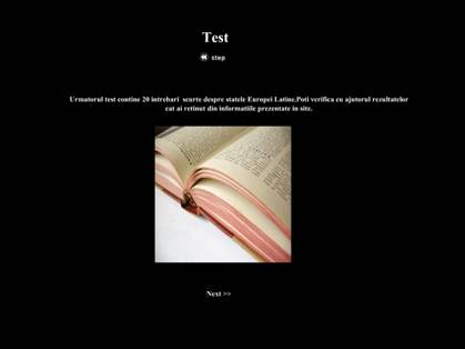 In partea inferioara se gaseste butonul next,prin apasarea caruia se trece la rezolvarea testului,ce cuprinde 20 intrebari scurte cu privire la textul prezentat.La sfarsitul acesteia va aparea pagina cu rezultate unde sunt afisate raspunsurile si scorul testului.