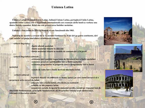 accesa alte pagini cu informatii despre Uniunea Latina,Imperiul Roman, Limbile Romanice.