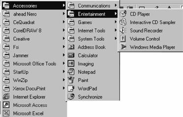 Accesoriile sistemului Windows fig303 , distribuite o data cu acesta, pot ajuta în executarea unor activitati deosebite, legate de un proiect curent, fara a se parasi aplicatia în derulare. De exemplu, se poate lucra în programul Word pentru redactarea unui document si este nevoie sa se execute un calcul rapid; programul Calculator din accesoriile sistemului Windows îl poate face. Cu programul Paint se pot crea diferite imagini (de mai mica complexitate), se poate accentua un punct important dintr-un raport sau pentru clarificarea unor instructiuni.