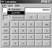 modului de lucru cu calculatorul - Standard fig311 sau Scientific fig312 se face din meniul View fig311