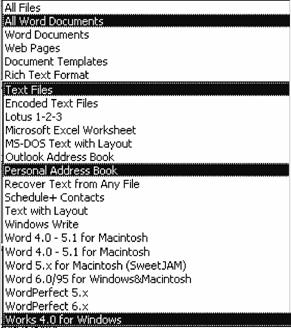Pentru restrângerea listei se selecteaza List File of Type (tipul dorit din lista).