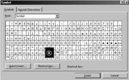 simbol, Symbol, este inclus în cele mai multe aplicatii Windows. Celelalte