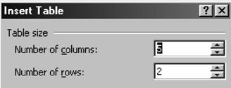 Se selecteaza meniul Table, optiunea Insert Table fig413 . Se va afisa o caseta de dialog pentru introducerea unui tabel.