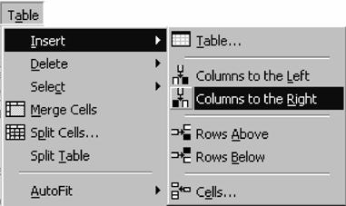Se selecteaza optiunea Table Insert Columns fig418 pentru inserarea unei coloane vide la stânga coloanei selectate sau Table Insert Row pentru inserarea unui rând vid deasupra celui selectat.
