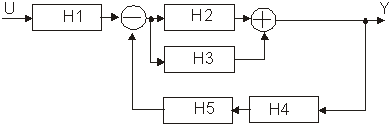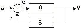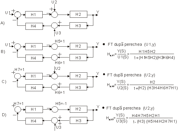 Din schema vom avea:Y(S)=HA(S)E(S), E(S)=U(S)±R(S), R(S)=HB(S)Y(S) de unde rezulta: