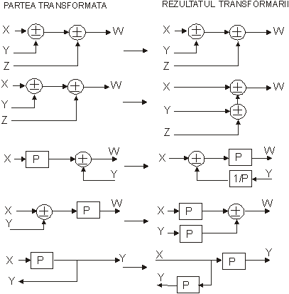 Regulile principale de transformare si rearanjare a punctelor de însumare si ramificare în schemele bloc complexe sunt prezentate în fig. 9.6