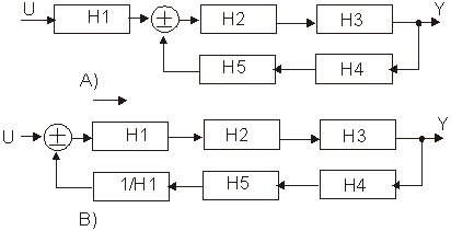 Exemplul 4: Sa se determine schema bloc canonica a sistemului cu reactie din fig.9.7A. Rezultatul este prezentat în fig. 9.7B.