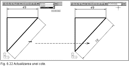 utilizarea optiunii Update presupune existenta stilului în care se doreste actualizarea cotei, stil care se face curent (cu ajutorul casetei Dimension Style sau din bara cu instrumente Dimension, ca in fig. 6.22).