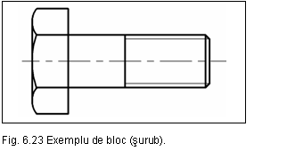 Blocul este compus din mai multe obiecte elementare primitive (linie, arc, cerc etc.) (ex. fig. 6.23); dupa definirea blocului, obiectele care-l compun vor fi manipulate ca un tot unitar si vor fi recunoscute de program dupa numele blocului, dat de desenator.