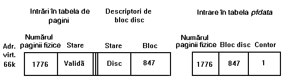 Figura 12.2 Intrari in tabela de pagini si descriptori de bloc disc