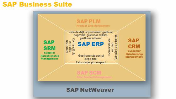 Toate aceste componente si aplicatii sunt realizate pe o platforma tehnica unica, dezvoltata de SAP - SAP NetWeaver - ceea ce asigura posibilitati de interconectare fiabile si rapide.