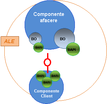 Componentele de afaceri interactioneaza in Cadrul de Afaceri in Interfete Programare Aplicatii (BAPI's) deschise.