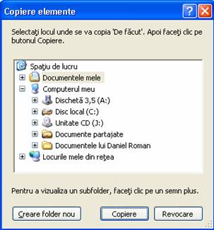 Apare caseta de dialog Copiere elemente.