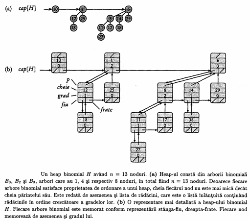 1. Fiecare arbore binomial din H satisface proprietatea de ordonare a unui heap: cheia unui nod este mai mare sau egala decât cheia parintelui sau.