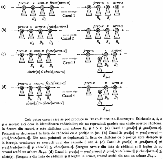 REUNEsTE(H1,H2,H) creeaza si returneaza un heap nou care contine toate nodurile heap-urilor H1 si H2. Heap-urile H1 si H2 sunt "distruse" în urma acestei operatii.