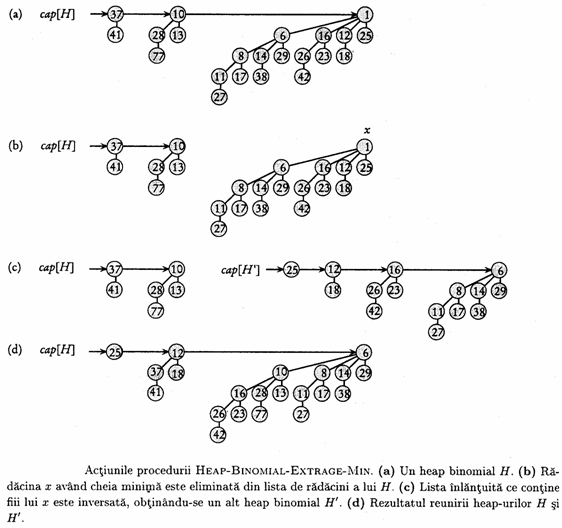EXTRAGE-MIN(H) sterge nodul cu cheia minima din H si returneaza un pointer la acest nod.