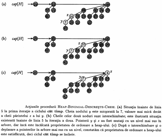 DESCREsTE-CHEIE(H,x,k) atribuie nodului x din heap-ul H valoarea k pentru cheie, valoare presupusa a nu fi mai mare decât valoarea curenta a cheii.