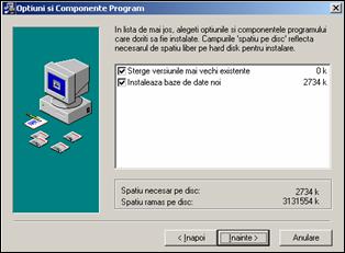 De-a lungul procesului de instalare, apasati butonul "Inainte" pentru a trece la urmatorul pas. In cazul in care reinstalati programul peste o alta versiune existenta, in cea fereastra a 3-a aveti optiunea "Sterge versiunile mai vechi existente". O alta optiune de instalare, "Instaleaza baze de date noi" va suprascrie bazele de date existente in versiunea anterioara, toate incasarile si setarile dinainte fiind pierdute. Pentru prima instalare, lasati ambele optiuni marcate (cu semnul V).