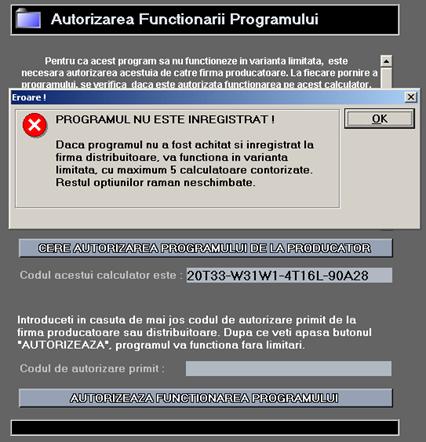 Dupa instalarea programului Server, daca acesta este instalat pentru prima data, va apare un mesaj care va anunta ca programul nu este inregistrat:
