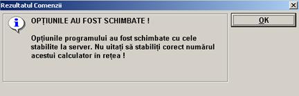 La optiunea "Numarul acestui calculator in retea" completati cu 1 sau dupa caz, 2, 3, etc. La optiunea "IP-ul calculatorului cu programul Server" treceti IP-ul de retea (de ex. 192.168.0.2) pe care-l are calculatorul unde a fost instalat programul Server. Nu treceti IP-ul serverului de Internet! (o confuzie des intalnita), ci al calculatorului unde a fost instalat programul Server. Odata aceste 2 setari stabilite, programl Client ar trebui sa comunice fara probleme cu programul Server. Pentru a testa acest lucru, apasati butonul "COPIE OPTIUNILE PROGRAMULUI DE LA SERVER". Ar trebui sa apara un mesaj de genul :