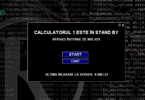 Butonul "CONT" permite accesul utilizatorilor la calculatoare pe baza de nume si parola, stabilite la server de catre administrator. Exista si posibilitatea ca sa se porneasca statiile de lucru de la server, in baza unei sume de bani prestabilite, cu inchiderea automata a clientului la epuizarea sumei de bani platite dinainte. Toate aceste optiuni si celelalte sunt discutate pe larg in manulaul "Instructiuni de utilizare".