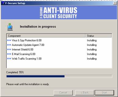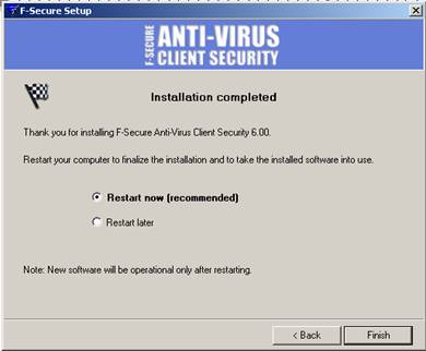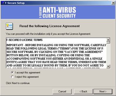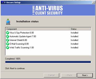 Observație! În acest fișier ,s-a explicat pas cu pas instalarea și configurarea F-Secure varianta Anti-Virus Client Security 6.00.Pentru varianta F-Secure Anti-Virus Client Security 5.56 ,instalarea și configurarea sunt identice.