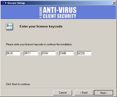 0KUC-3RT1-0T6V-CN8E-QCZQ (F-Secure Anti-Virus Client Security 6.00 pentru Windows 2000,XP)