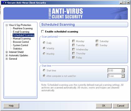 Revenim la fereastra principală la "Virus&Spy Protection" și selectăm acum din stânga Scheduled Scanning/Configure. Va apărea următoarea fereastră: