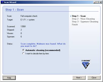 În cele din urmă, din meniul "Virus&Spy Protection" selectăm Scan my computer. /Perform full computer check.Va dura ceva.
