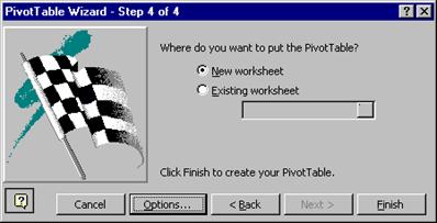 Tabela pivot se creeaza selectand sursa datelor de sintetizat si operand comanda Data - Pivot Table Report, dupa care un asistent Pivot Table Wizard indruma utilizatorul in 4 pasi.