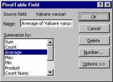 se alege tipul de operatie care va aplica datelor regrupate (Sum; Max; Min; Avarage; Count; Product) din caseta Use Function;