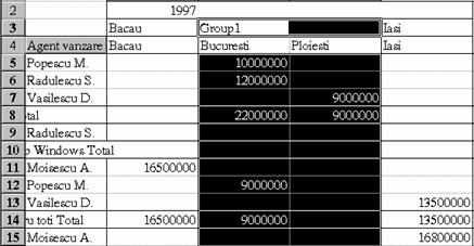 Rezultatul gruparii si totalizarii datelor este prezentat in figura 1.153.