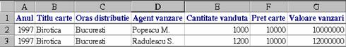 De exemplu plasand cursorul la intersectia a doua rubrici, anume Oras distributie = Bucuresti si Birotica Total, rezulta in urma unui dublu-click o extragere tip baza de date, pentru vanzarile totale de carte cu titlul "Birotica" in Bucuresti (fig. 1.151).