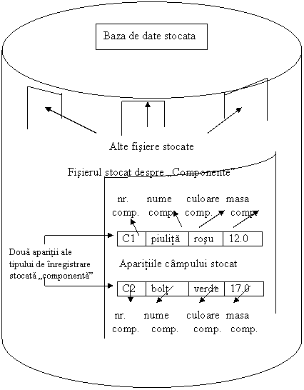 Un fisier stocat reprezinta colectia tuturor aparitiilor unui tip de înregistrare stocata, existente în mod curent.