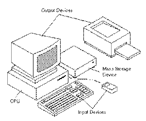 Computerul primeste semnale de intrare de la utilizator prin intermediul tastaturii sau a altor componente de intrare. Aceste intrari sunt transferate în memoria RAM de unde urmeaza o serie de procese (processing): de calcul, comparare sau copiere. În functie de rezultatele procesarii computerul returneaza rezultatul corespunzator. Returnarea se face prin intermediul componentelor de iesire (output devices), fie prin afisare pe ecranul monitorului fie prin scriere pe un suport magnetic (disk), fie printr-un canal de comunicatie.