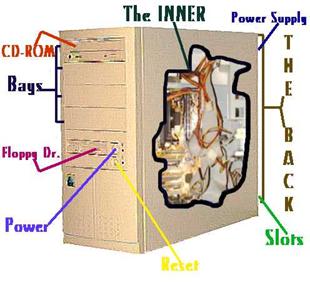 carcasa computerului (case): ce contine o multitudine de componente (ex: placa de baza, hard disk, floppy drive, CD-ROM, etc.)