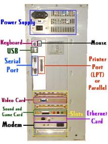 Partea din spate a cutiei computerului contine o serie de elemente necesare conectarii computerului cu celelalte componente ale sale externe cum ar fi (figura 1.4):