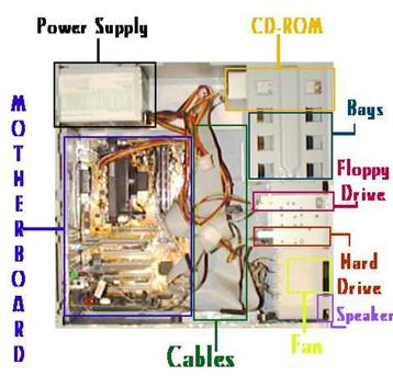 Interiorul cutiei unui computer contine o multitudine de elemente dintre care: