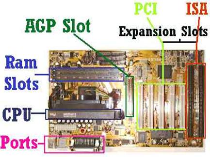 expantion slots (PCI, ISA) - conector de montare a diverselor alte componente (placi de sunet, modem, etc.)