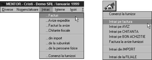 Cele dou\ meniuri derulante prezint\, `n dou\ moduri diferite de structurare, documentele de intrare de pe care se pot culege datele referitoare la intr\rile `n stocuri.