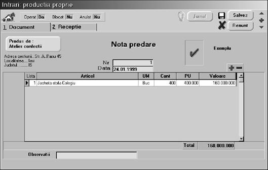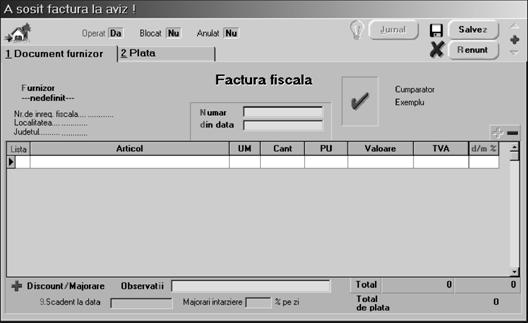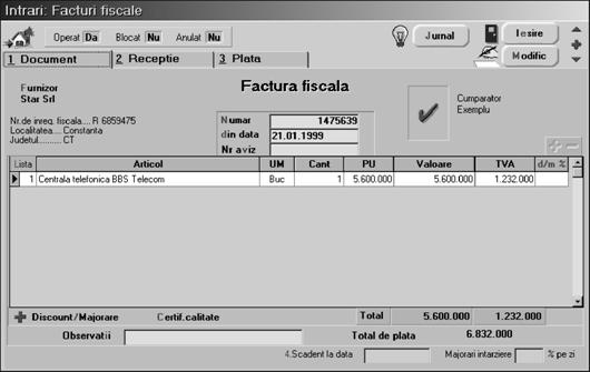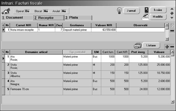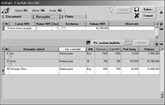 Mai ave]i de introdus doar num\rul facturii [i data (n-a]i uitat, nu-i a[a? Ajunge doar ziua!) [i pute]i trece la a doua fereastr\ a machetei `n care ve]i opera recep]ia.