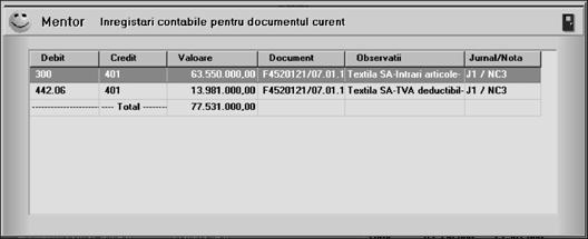 Selecta]i butonul "OK" [i `n grila documentelor de leg\tur\ vor fi afi[ate documentele implicate `n tranzac]ie (vezi figura 5.4.2.3).