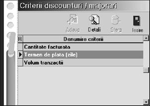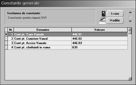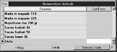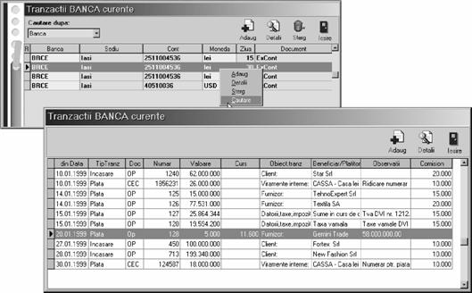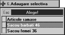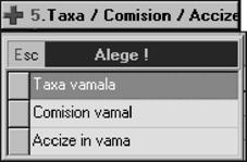 Indiferent de op]iunea selectat\, rezultatul va fi afi[area pe ecran a unei liste de c\utare a c\rei structur\ a fost prezentat\ la `nc\rcarea soldurilor ini]iale `n planul de conturi (vezi subcapitolul 4.2.). Selectând butonul "ADAUG" cu ajutorul mouse-ului sau tastând "ALT-A" ve]i putea folosi macheta de introducere a datelor pentru documentul selectat `n meniul derulant.